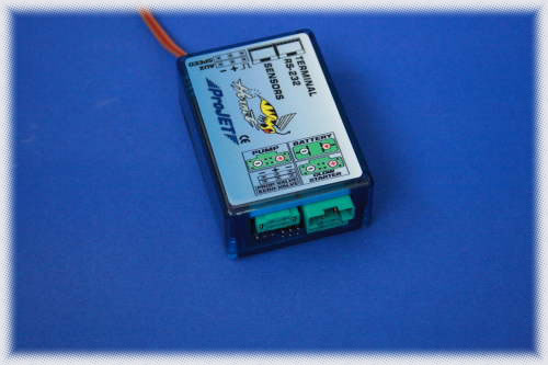 ![]() Zu den Aufgaben der ECU (Regeleinheit) gehören unter anderem die Erfassung sämtlicher Parameter der Turbine, die von den Sensoren, bestehend aus dem Temperaturfühler und dem optischen Drehzahlsensor geliefert werden. Sie steuert weiterhin zwei Magnetventile. Ein Ventil ist für die Dosierung des Hilfsgases (Propan/Butan) zur ersten Zündung des Strahltriebwerkes oder des vorhanden Kerosinbrenners und das andere zur Steuerung des Kraftstoffflusses zum Strahltriebwerk nach der Initialzündung durch das Hilfsgas oder Kersinbrenner, zuständig. ![]() ![]() Damit die Glühkerzen-/Kerosinbrennerspannung, Minimum/Maximum-Drehzahl , Pumpenanlaufspannung etc. an der ECU manipuliert werden können, wird ein Anzeigeterminal ( GSU (Ground Support Unit)) benötigt. |